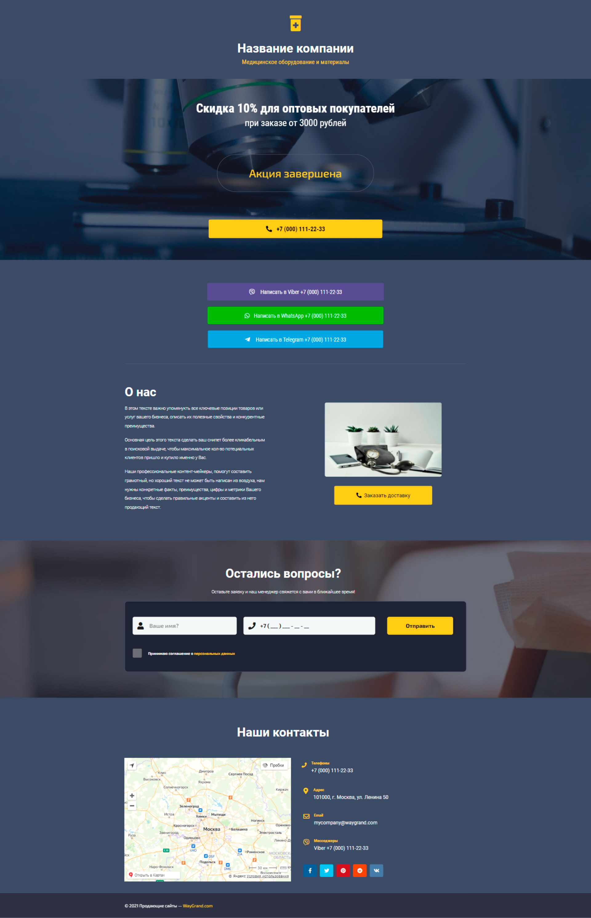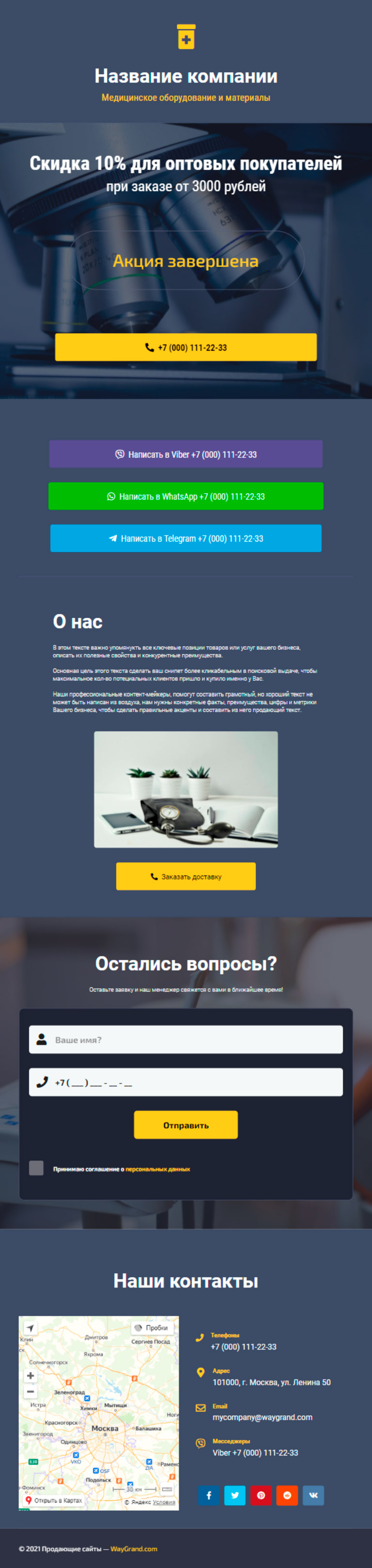 Закажите готовый продающий сайт визитка #1027101 в Владикавказе за 5-7 дня «под ключ»: свёрстан, отрисован и готов к рекламе. Тематика шаблона «Медицинское оборудование и материалы».
