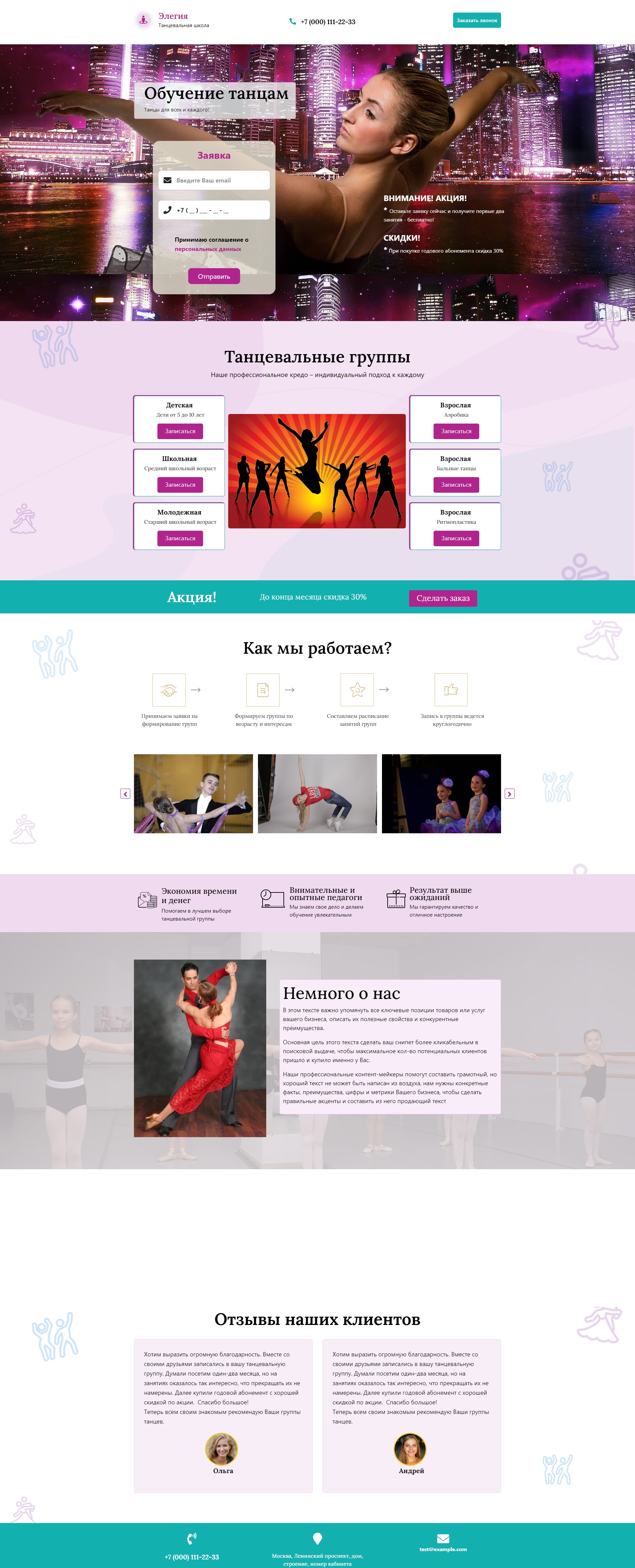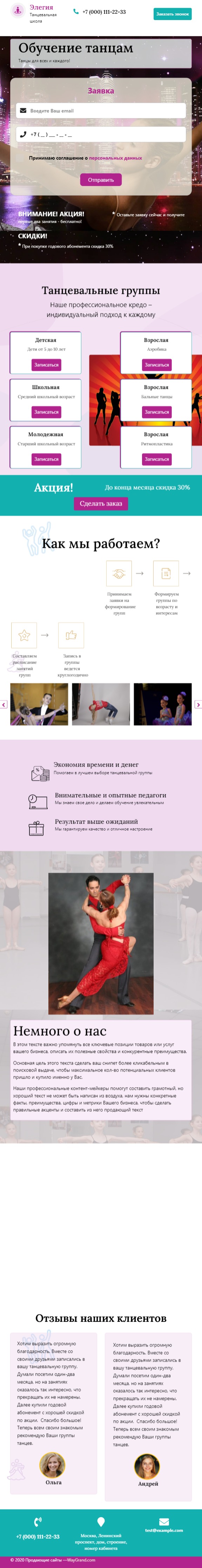 Закажите готовый продающий сайт лендинг #1923201 в Владикавказе за 1-3 дня «под ключ»: свёрстан, отрисован и готов к рекламе. Тематика шаблона «Обучение танцам».