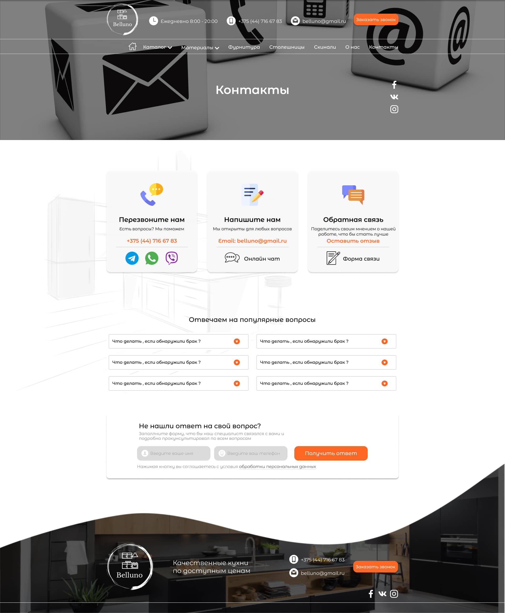 Закажите готовый продающий сайт визитка #282 в Владикавказе за 5-7 дня «под ключ»: свёрстан, отрисован и готов к рекламе. Тематика шаблона «Кухни».