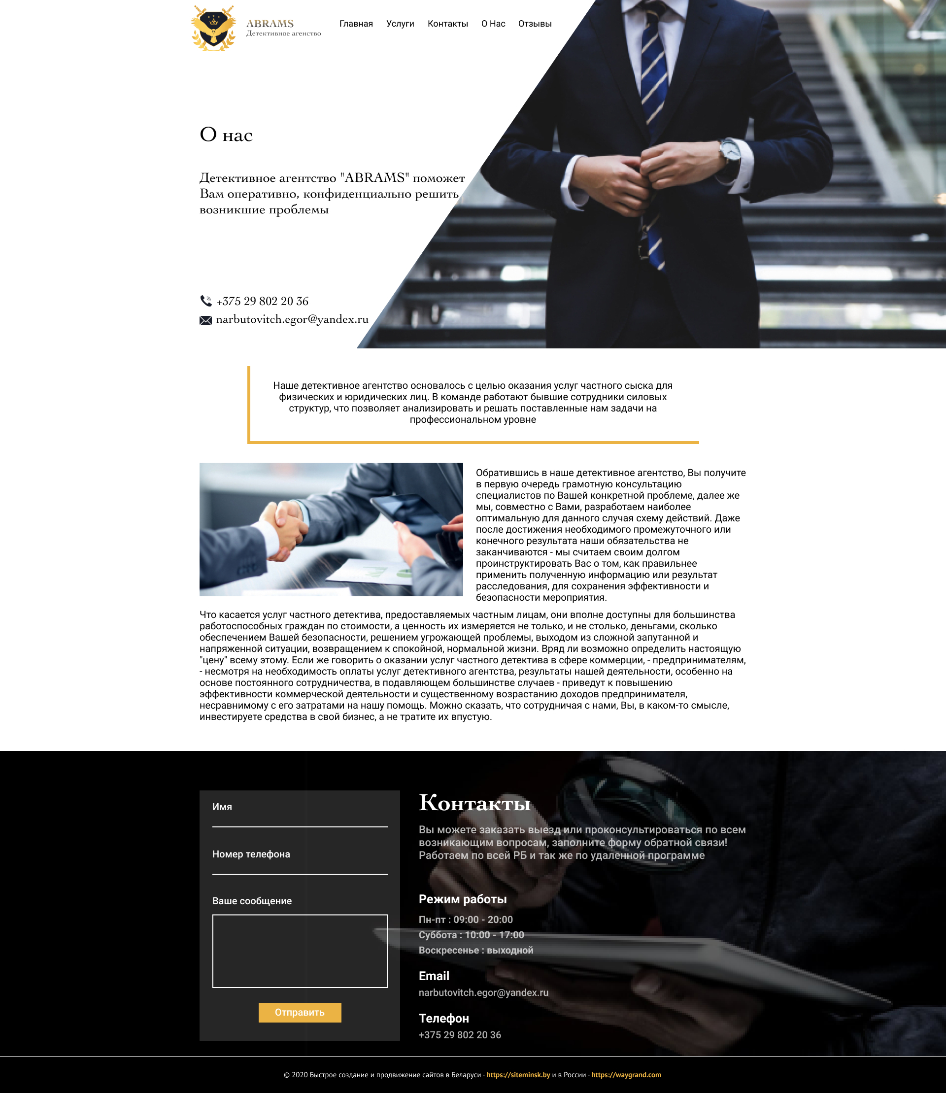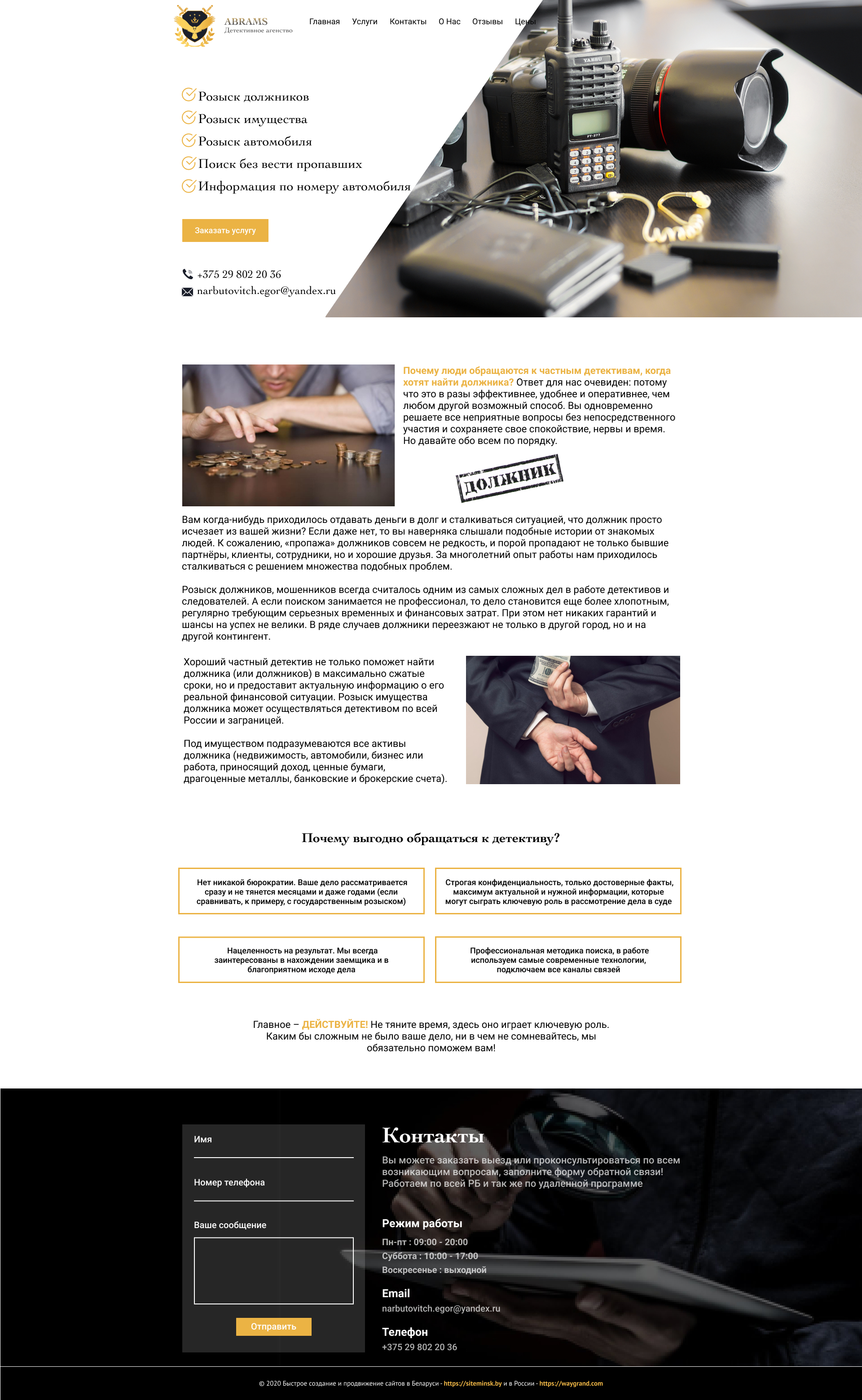 Закажите готовый продающий сайт визитка #239 в Владикавказе за 5-7 дня «под ключ»: свёрстан, отрисован и готов к рекламе. Тематика шаблона «Частное детективное агентство».